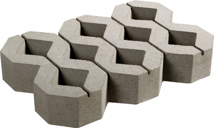 The exceptionally sturdy Turfstone interlocking concrete paver allows grass to grow up through the diamond cutouts while preventing soil run off and offering the support necessary to maintain a level, beautiful surface.